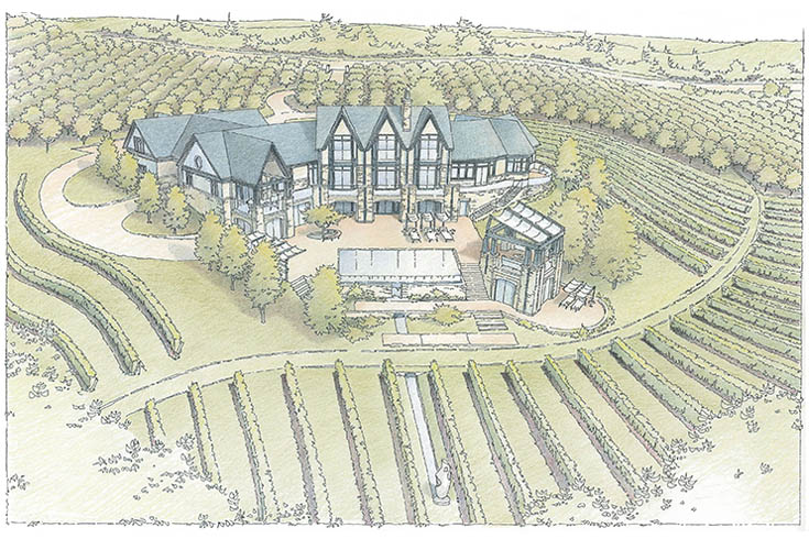 This 6200 sq. ft. home is located on the rolling hills of the Oak Ridges Moraine, 40km north of Toronto. The client purchased this 50 acre property to create a private winery and sea buckthorn orchard on the agricultural land that surrounds his home. Its placement of the “S” shaped plan on a south facing hillside affords views across the planted fields and orchards to an adjacent forest and small lake below, with Toronto’s skyline glittering in the distance.