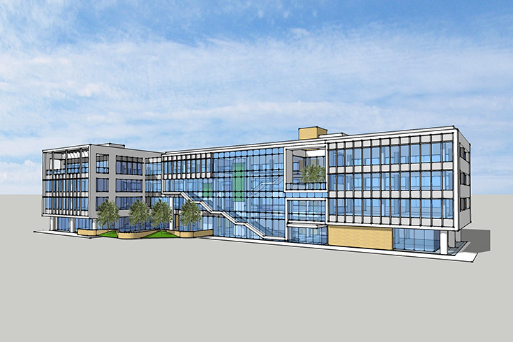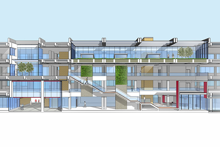 This 85,000 sq/ft., four storey, office building is the head office and public component of a larger complex of industrial buildings for the Nantong Calliper Manufacturing Company. Designed to accommodate the administrative staff and corporate team, this building is organized around a three storey atrium and interconnecting stair and greenwalls to encourage staff to move freely throughout the building.