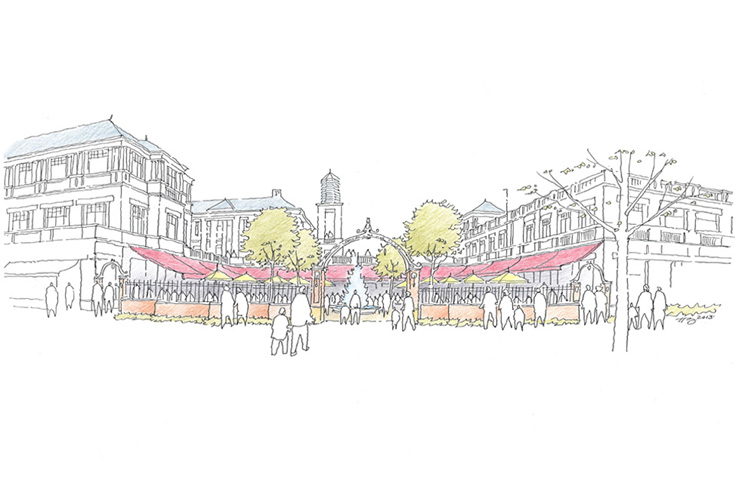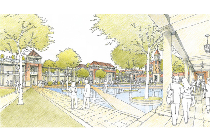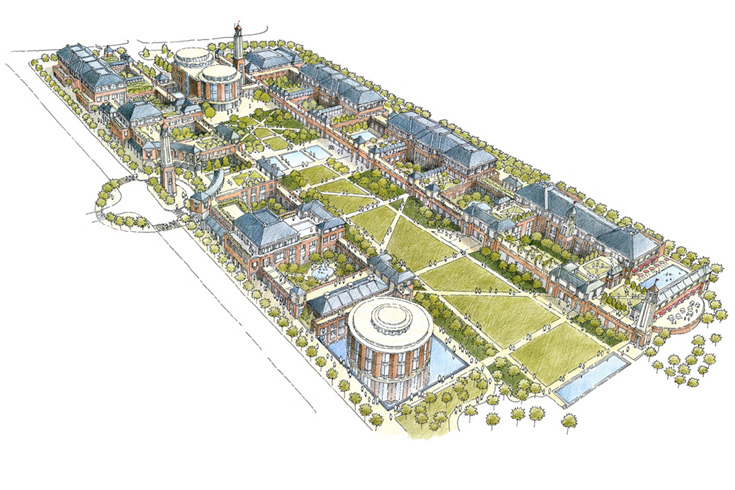 Thomas Jefferson’s University of Virginia was the inspiration for the design of the China Europe International Business School’s (CEIBS) new campus in Chengdu. The 19 separate buildings of this research-focused business school enclose a “Great Lawn” that gently slopes from the University’s main administration building to Chengdu’s Nobel Peace Park. Howard Rideout designed this project while working as a consultant to B+H Architects in Shanghai.