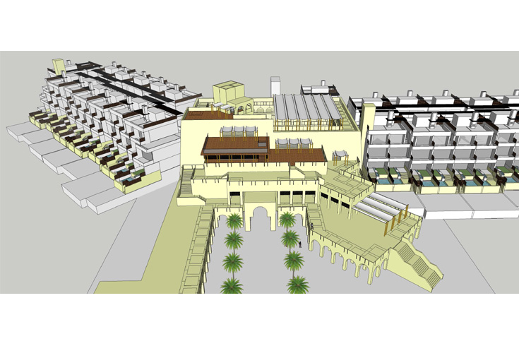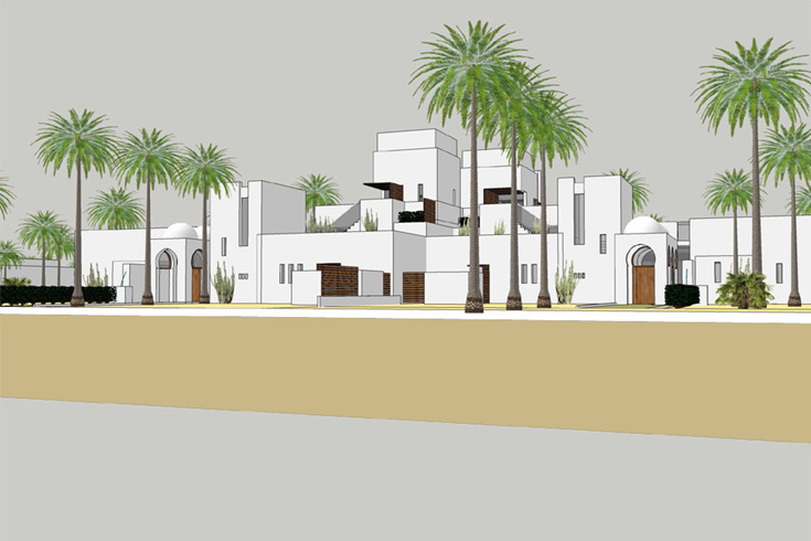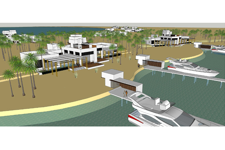 This Moroccan-themed resort in the Persian Gulf near Doha was designed by Howard Rideout for B+H Architects, to create an island retreat that encourages guests to explore the entire archipelago during their stay. A 5-star hotel on the central island is designed to resemble a Moroccan hilltop citadel with 100 luxury villas that dot the islands representing the surrounding village.