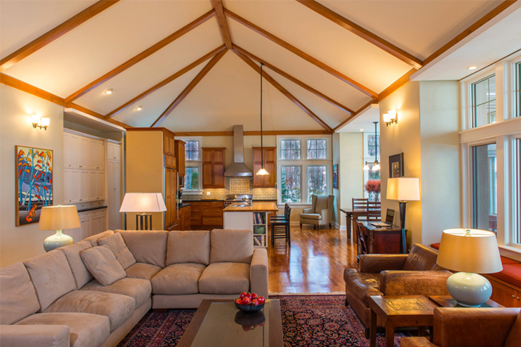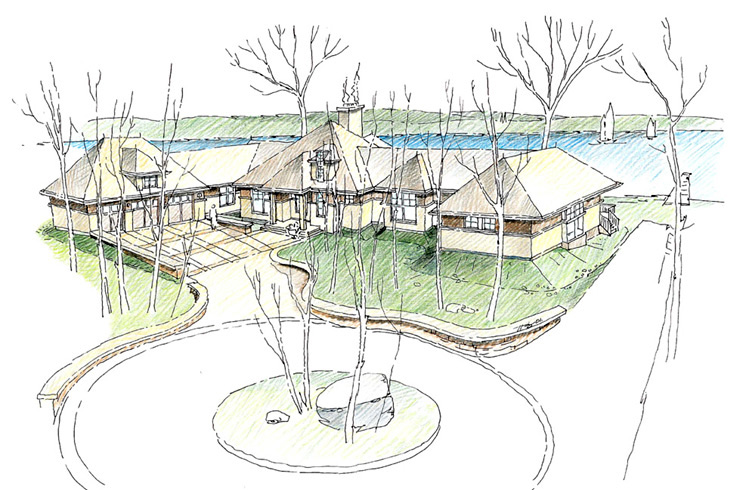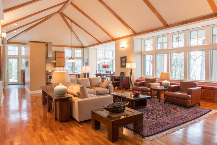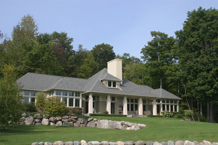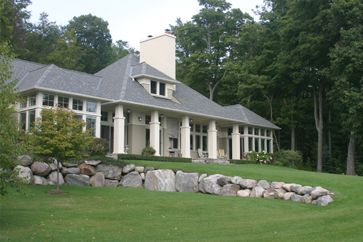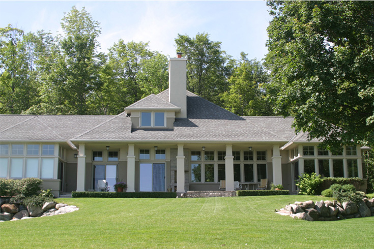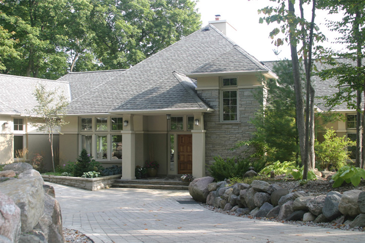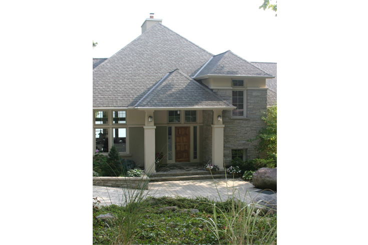 Located on Georgian Bay across from Midland Harbour, this 4,700 sq. ft., 3-bedroom home is designed to provide the owners with principal living accommodation on the main floor, which is surrounded by a forest setting. Guest suites are thoughtfully located in the loft and accessible by an interior bridge across the main hall.