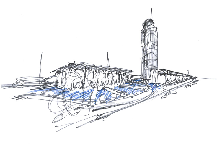 "Dockside at Figure 8", is a 1.5km long waterfront playground for Tianjin’s new Binhai District. An undulating boardwalk that forms a series of 8’s, encircles 8 distinct islands of activity along a historic canal. On its west end, the buildings are large and dramatic that responds to the city core, and steps down in scale as it moves toward the east end, integrating with the adjacent city park. Howard Rideout is the chief designer of this project as a consultant to B+H Architects, Shanghai.