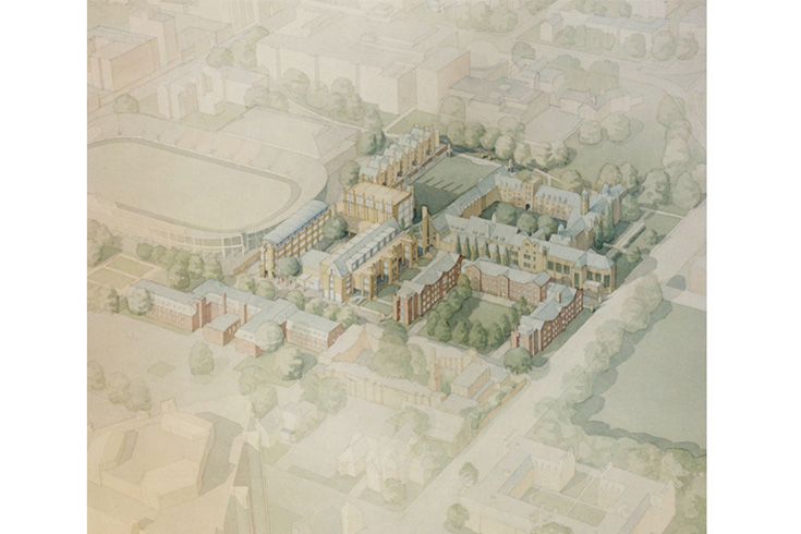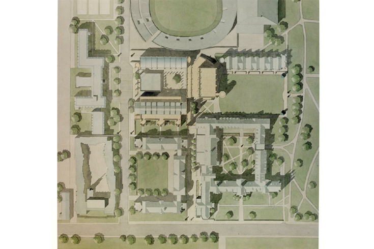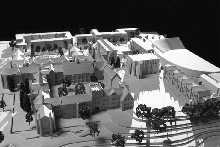 Working under the direction of Thomas Payne – then partner of KPMB Architects, Howard Rideout (together with Lexi Kolt-Wagner and Howard Sutcliffe) prepared the detailed design for the aerial perspectives, and basswood model of this master plan. The design created intimate exterior and interior rooms by utilizing all of the College properties. The new buildings referred to the historic components of the campus to ensure a cohesive architectural expression.